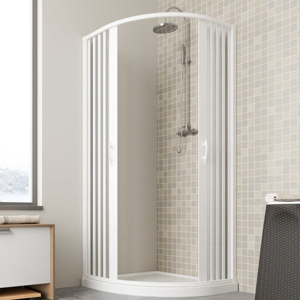 CABINA DOCCIA CIRCOLARE CON APERTURA A SOFFIETTO CENTRALE. CON CHIUSURA MAGNETICA. REVERSIBILE E RIDUCIBILE. PROFILO BIANCO PASTELLO. PANNELLO ONDULATO IN PVC MILLERIGHI. ALTEZZA BOX DOCCIA 188CM. MANIGLIA IN PVC. RAGGIO 55 CM.ACCESSORI IN ABS. RIDUCIBILE A QUALSIASI MISURA TAGLIANDO IL BINARIO DI SCORRIMENTO. SCORRIEMENTO SU PATTINI
