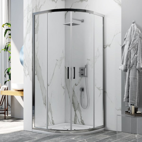 BOX DOCCIA SEMICIRCOLARE IN VETRO TEMPERATO DA 6MM,DAL DESIGN ESSENZIALE E AL CONTEMPO INNOVATIVO. H.195CM,PROFILO IN ALLUMINIO CROMATO. SISTEMA DI FACILE MONTAGGIO. REVERSIBILE. SGANCIAMENTO ANTE. MANIGLIA IN ABS CROMO. CON SISTEMA EASY INSTALLATION (FACILE MONTAGGIO)INSTALLAZIONE SU PIATTO DOCCIA E FILOPAVIMENTO