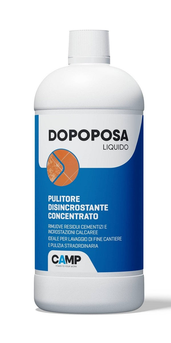 Disincrostante acido concentrato tamponato, gradevolmente profumato, specifico per il trattamento di pulizia dopo posa dei pavimenti e dei rivestimenti. Rimuove incrostazioni e sporchi dopo posa, residui di malta, cemento o calce, macchie di pittura murale, calcare, efflorescenze saline, adesivi e stucchi cementizi, residui di fuganti, muschi, muffe, alghe, ecc.