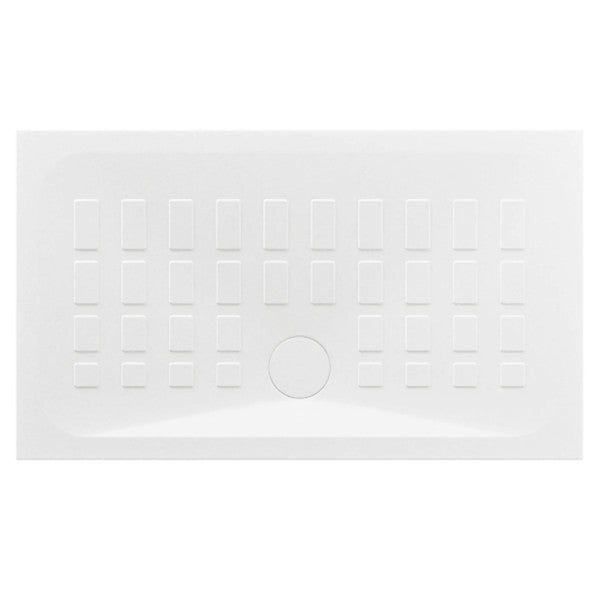 PIATTO DOCCIA IN CERAMICA CON BORDO A RILIEVO CHE RISOLVE ATTRAVERSO UN PATTER GRAFICO TRIDIMENSIONALE LA FUNZIONE ANTISCIVOLO, CONVERTENDOLA IN ESTETICA GRAZIE A UNA MAGLIA GEOMETRICA A GRIGLIA ORTOGONALE. OLTRE CHE DECORATIVO, IL MOTIVO FAVORISCE AL MEGLIO IL DEFLUSSO DELL ACQUA VERSO LA PILETTA DI SCARICO. ALTEZZA 4CM. SUPERFICIE ANTISCIVOLO. PILETTA NON INCLUSA