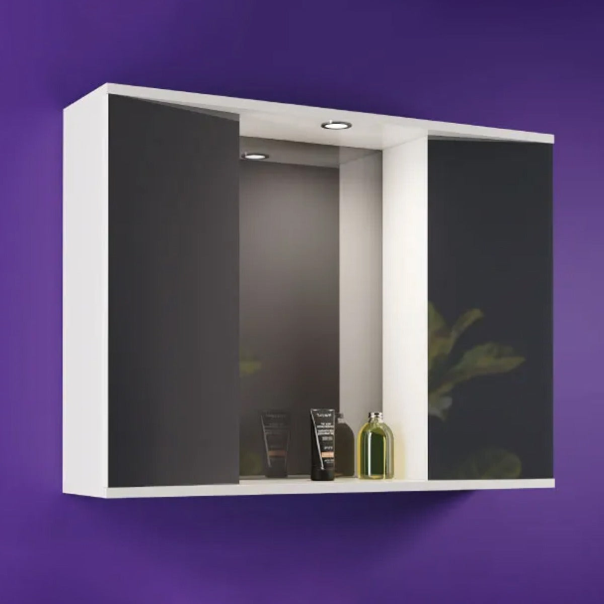 REALIZZATA IN MDF. SPECCHIERA CONTENITORE. LINEE DAL DESIGN DEFINITO. COMPOSTA DA DUE ANTE CON FARETTO CENTRALE. ANTE A SPECCHIO. FINITURA BIANCA. CON RIPIANI INTERNI. LUCE NATURALE