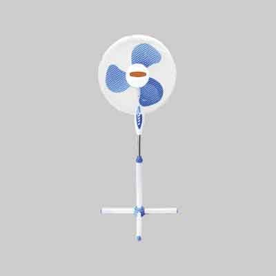 Alimentazione 220V/50Hz, 45 Watt. Corpo in plastica, griglia di protezione in metallo, supporto a crociera con colonna regolabile in altezza (H. max cm 130). 3 velocità, oscillazione orizzontale, inclinazione verticale regolabile.