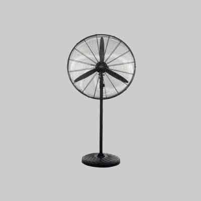 Alimentazione 220V/50Hz, 130 Watt. Corpo, griglia di protezione e pale in metallo, base tonda stabile e pesante (H. max cm 160). 3 velocità, ampia oscillazione orizzontale.